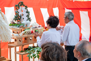 創祀1710年奉祝 令和の大修造営事業 第一期工事のご案内 令和の大修造営事業 第一期工事「祈祷殿新築工事」が始まりました 令和6年 2月19日既存施設の「客殿」の取り壊しが開始 以降、3月10日頃まで工事を行います 3月14日「祈祷殿新築工事 地鎮祭」を関係者ご参列のもと執行 7月29日「祈祷殿新築工事 上棟祭」を関係者ご参列のもと執行